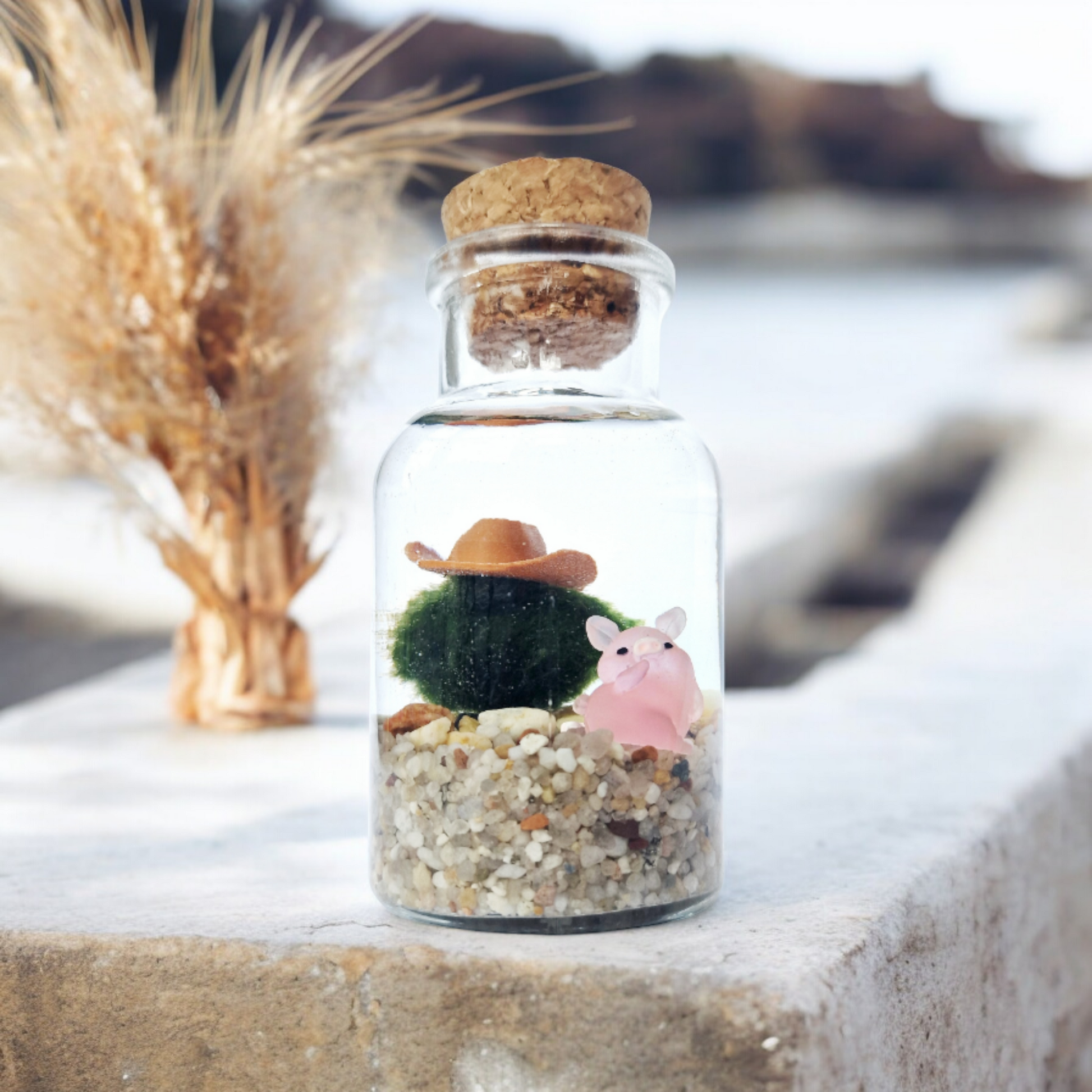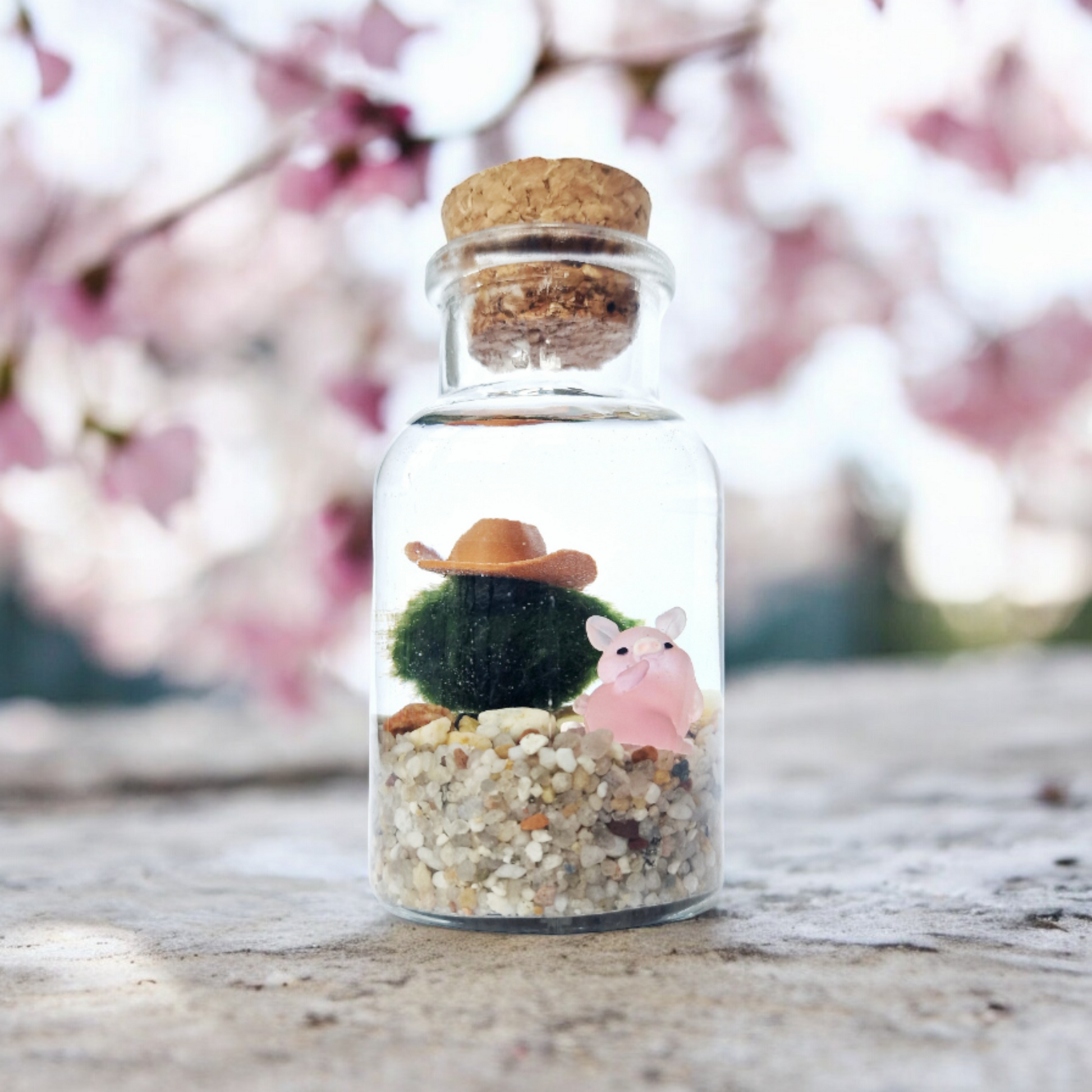 A cute little cowboy Marimo who spends his time with his piggies. Comes disassembled and includes: