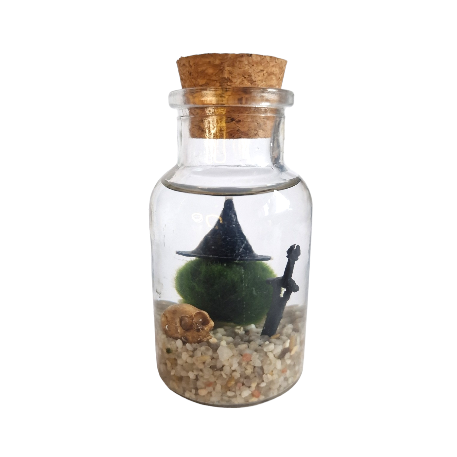 For the little witch in all of us. You now have a spooky friend for life! Just add water to keep your new little mage happy. Marimo require minimal care and can live over 100 years. This witchy Marimo moss ball kit comes disassembled and includes: